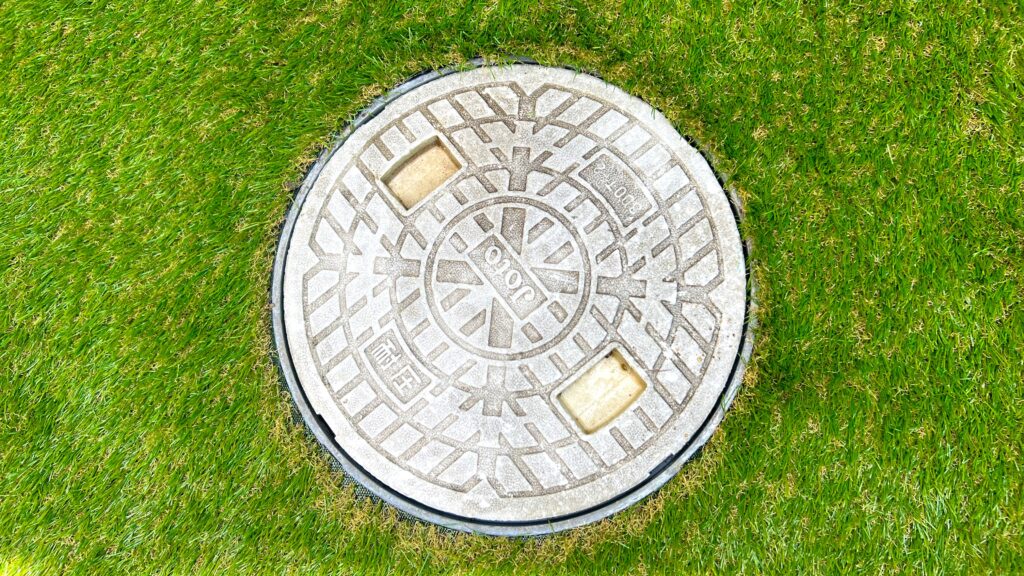 排水桝のくり抜きを人工芝座布団にしてみました^^