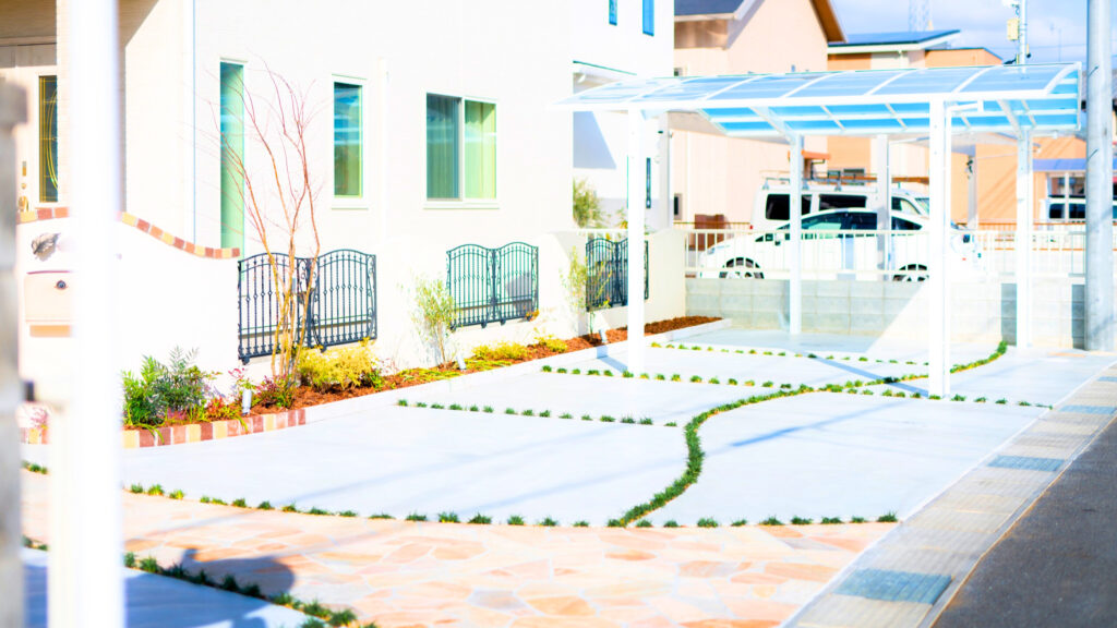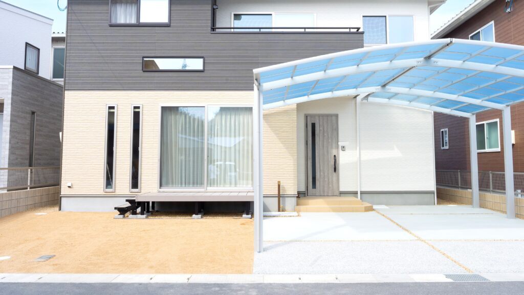 明るく、清潔感のある印象を与える白やシルバーのカーポートは、住宅の外観をよりスタイリッシュに見せる効果があります。