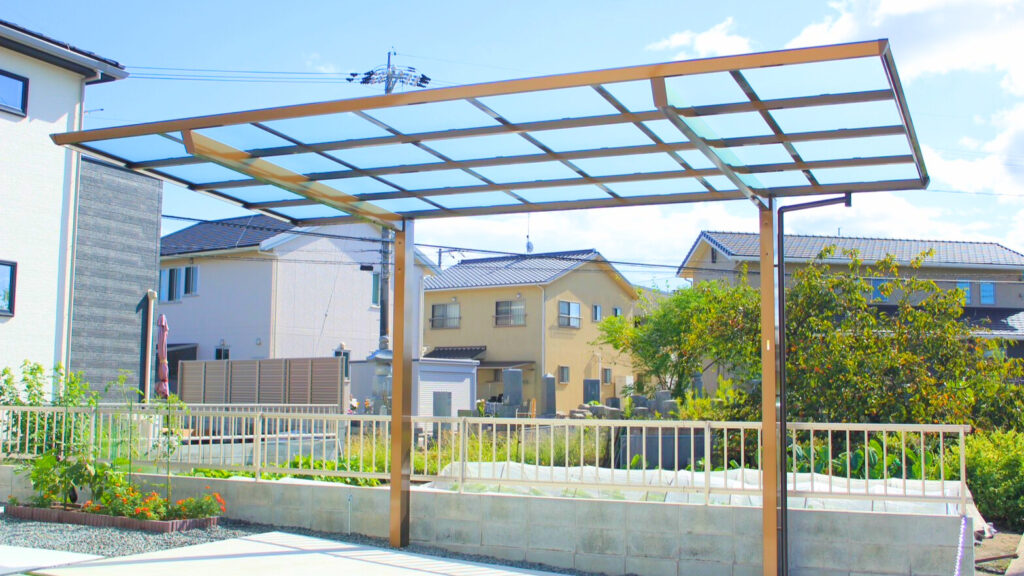 白いカーポートは、住宅の外観をぱっと明るく、清潔感あふれる印象にしてくれます。光をやさしく反射する白は、カーポートの下や周囲まで自然に明るく見せ、家全体をスタイリッシュに引き立てます。どんな外壁の色にも合わせやすく、和風でも洋風でもモダンでも、スッキリと統一感のある外構をつくることができます。また、白は植栽や人工芝の緑とも相性が良く、庭全体がより華やかに見えるのも魅力です。少し汚れが目立つこともありますが、その分お手入れのタイミングが分かりやすく、定期的に掃除すればいつまでも美しい状態を保てます。